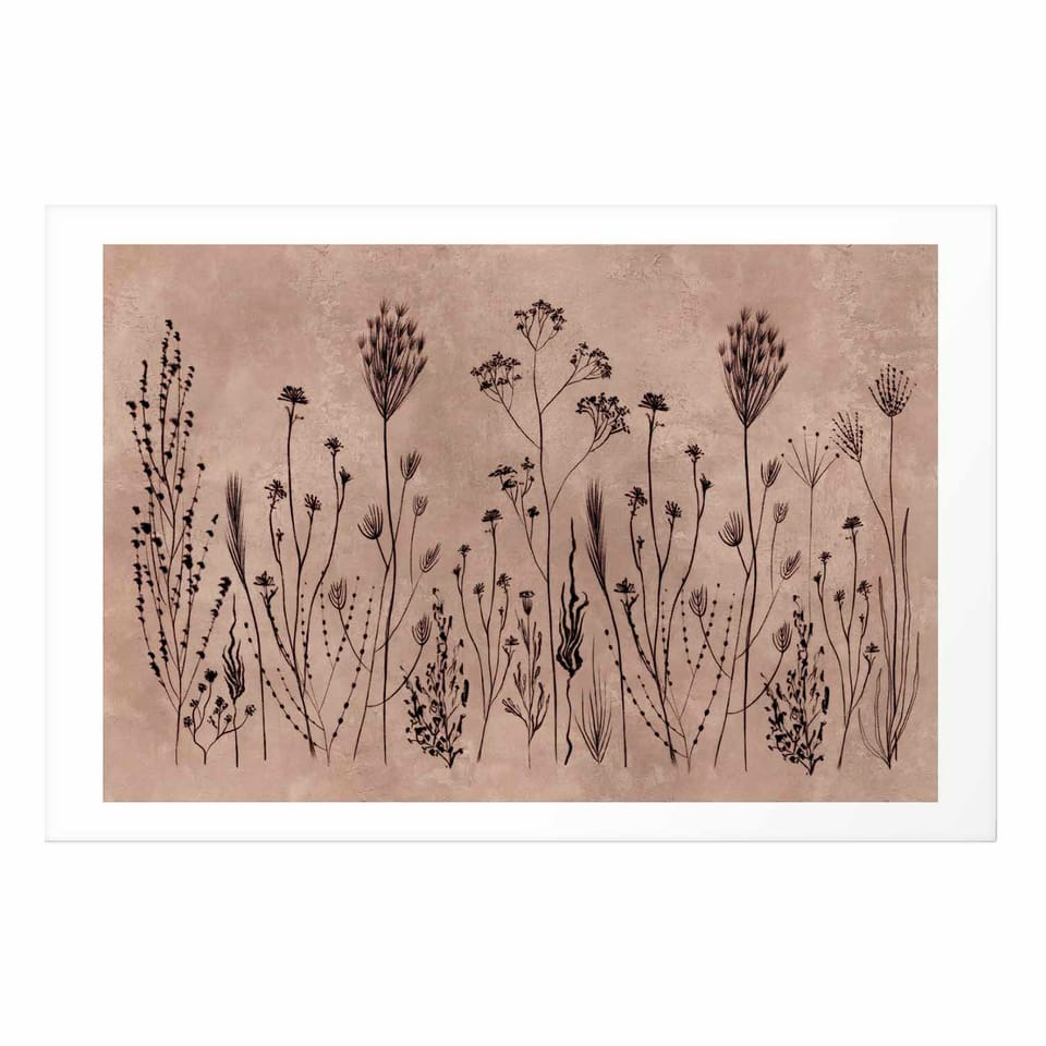 Plakat - Polne kwiaty - czarne rośliny na tle w technice lime wash rozmiar 90x60, wykończenie Bez ramy z marginesem