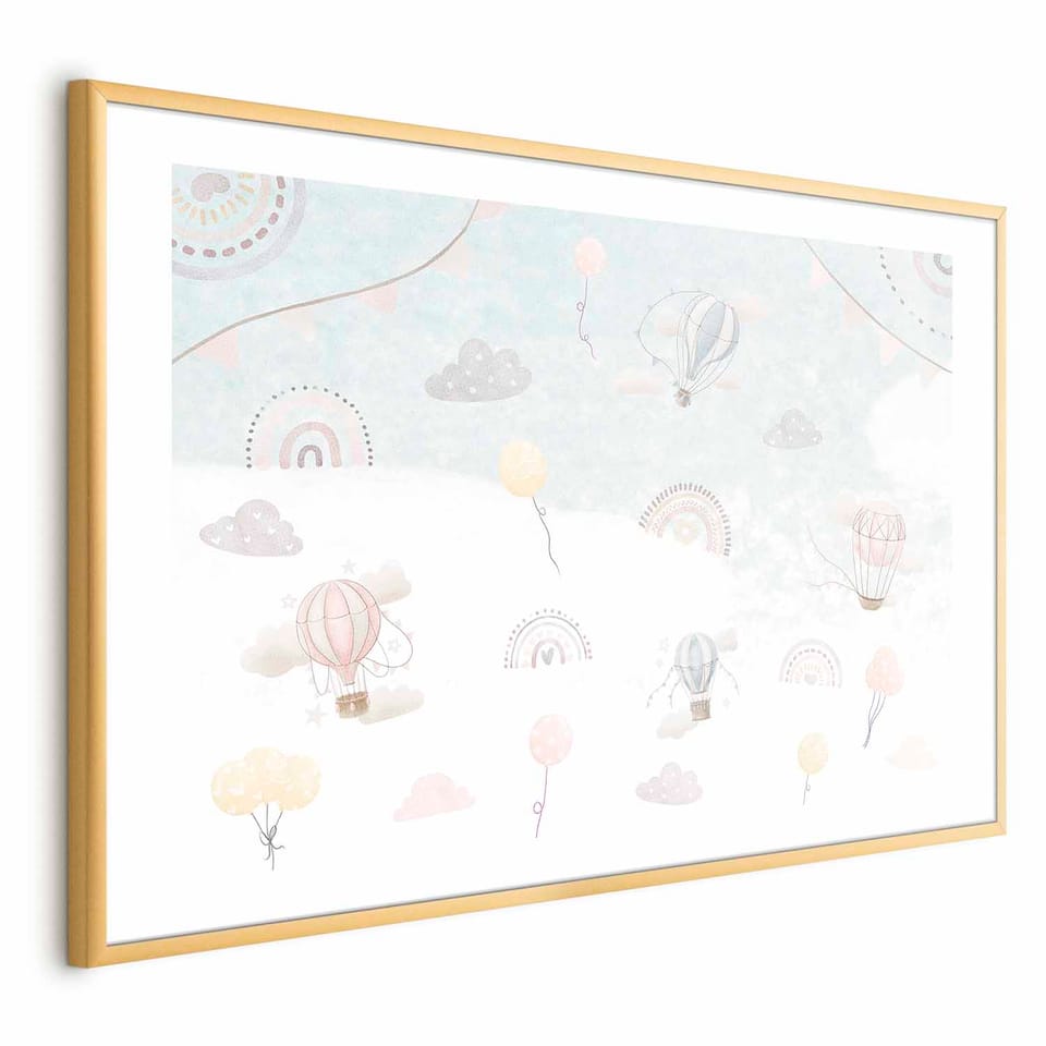 Plakat - Przygoda pośród chmur rozmiar 90x60, wykończenie Rama złota z marginesem