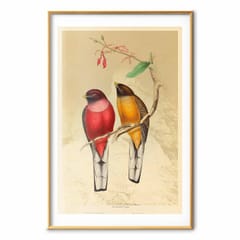 Plakat - Ptaki na gałązce rozmiar 60x90, wykończenie Rama złota z marginesem