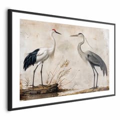 Plakat - Ptaki ze starej ryciny - ilustracja w stylu vintage; przedstawiająca czaplę i żurawia rozmiar 90x60, wykończenie Rama czarna z marginesem