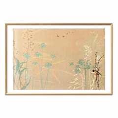 Plakat - Ptaszek na łące rozmiar 30x21, wykończenie Rama złota z marginesem