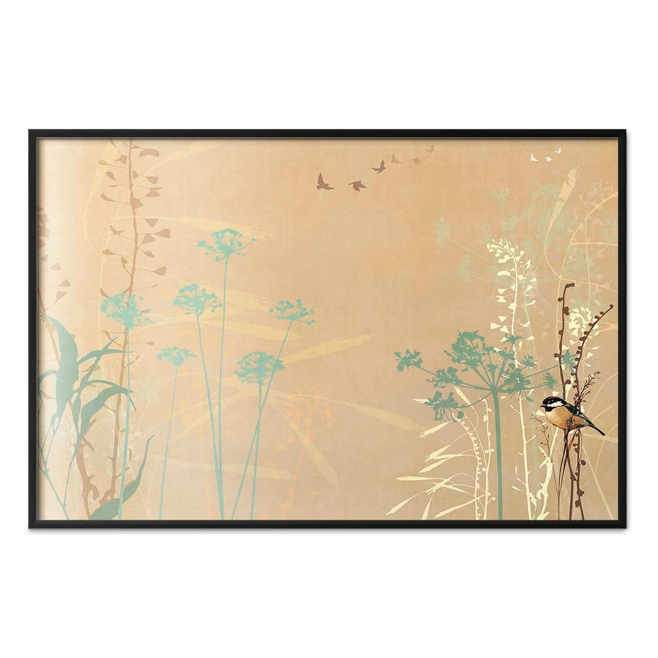 Plakat - Ptaszek na łące rozmiar 42x29.7, wykończenie Rama czarna