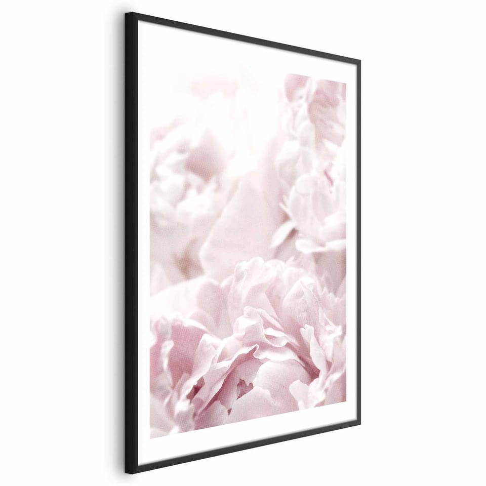 Plakat - Puszyste peonie rozmiar 60x90, wykończenie Rama czarna z marginesem