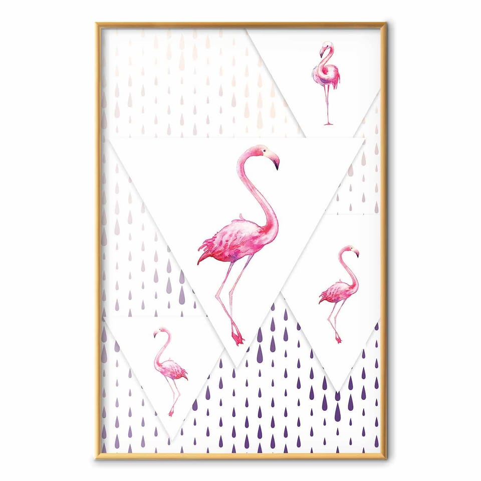 Plakat - Rodzina flamingów rozmiar 21x30, wykończenie Rama złota