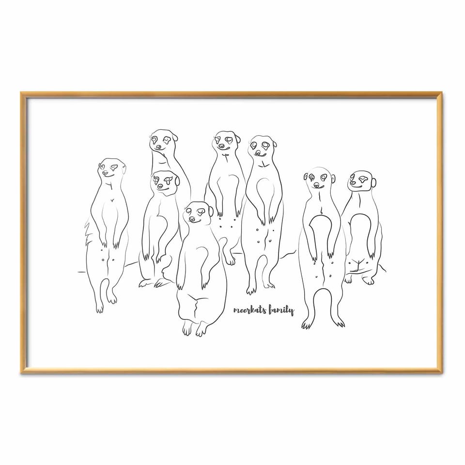 Plakat - Rodzina surykatek rozmiar 30x21, wykończenie Rama złota z marginesem