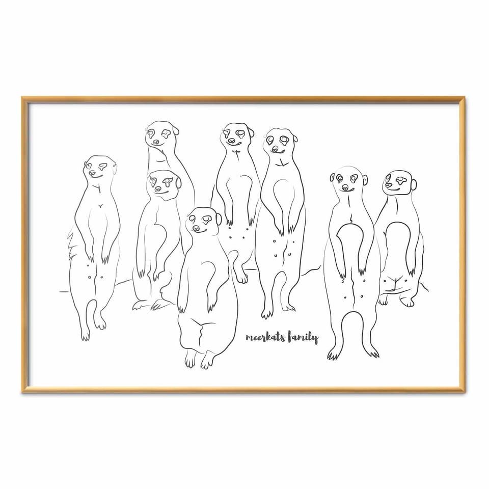 Plakat - Rodzina surykatek rozmiar 42x29.7, wykończenie Rama złota