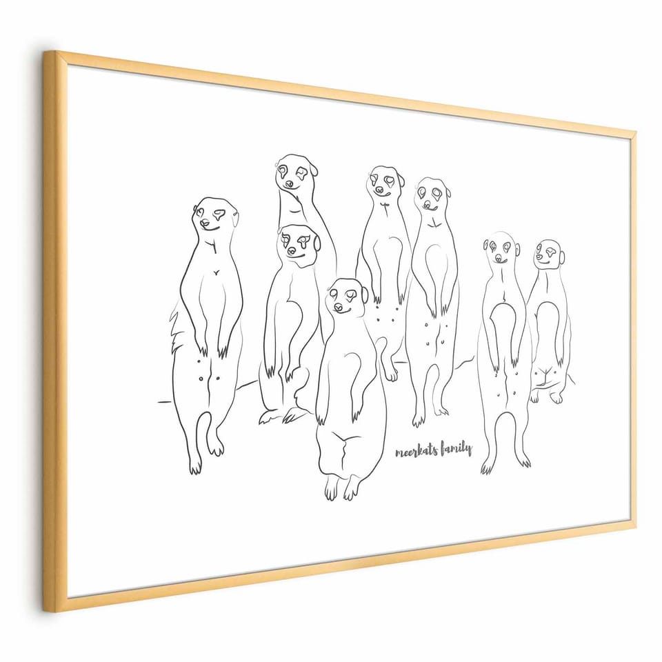 Plakat - Rodzina surykatek rozmiar 42x29.7, wykończenie Rama złota z marginesem