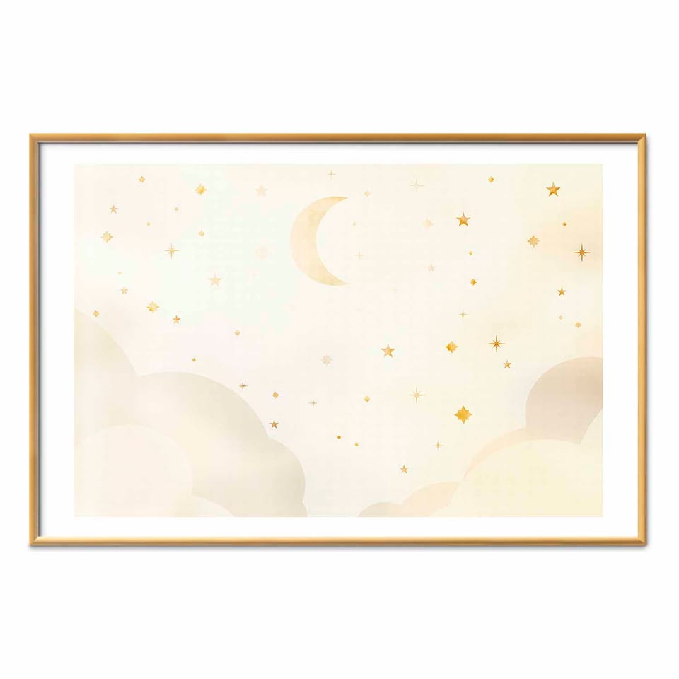Plakat - Rozgwieżdżona noc rozmiar 30x21, wykończenie Rama złota z marginesem