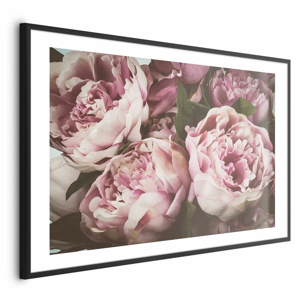 Plakat - Różowe piwonie rozmiar 30x21, wykończenie Rama czarna z marginesem