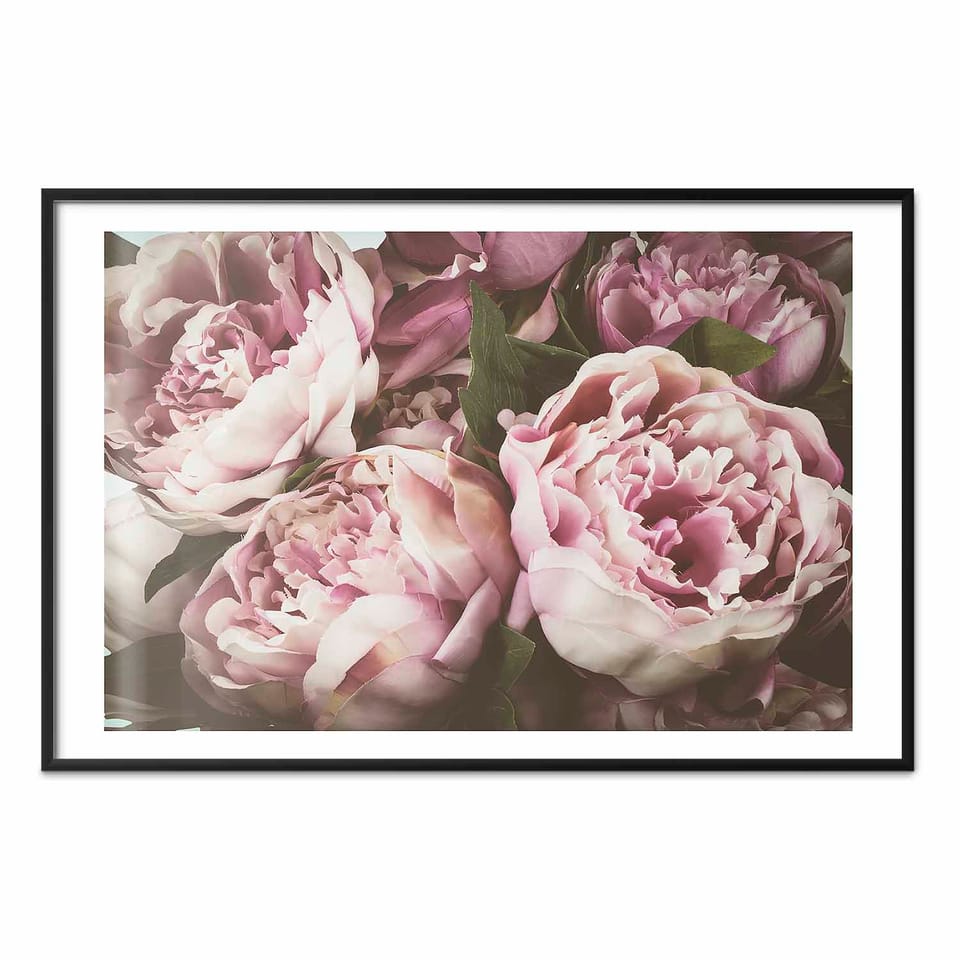 Plakat - Różowe piwonie rozmiar 42x29.7, wykończenie Rama czarna z marginesem