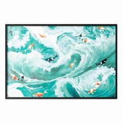 Plakat - Ryby i fale rozmiar 90x60, wykończenie Rama czarna