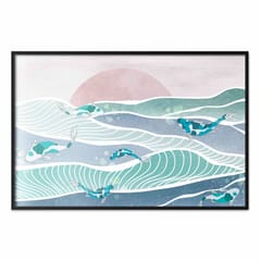 Plakat - Ryby na falach rozmiar 42x29.7, wykończenie Rama czarna