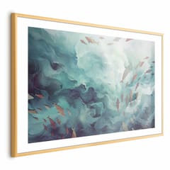 Plakat - Ryby w oceanie rozmiar 90x60, wykończenie Rama złota z marginesem
