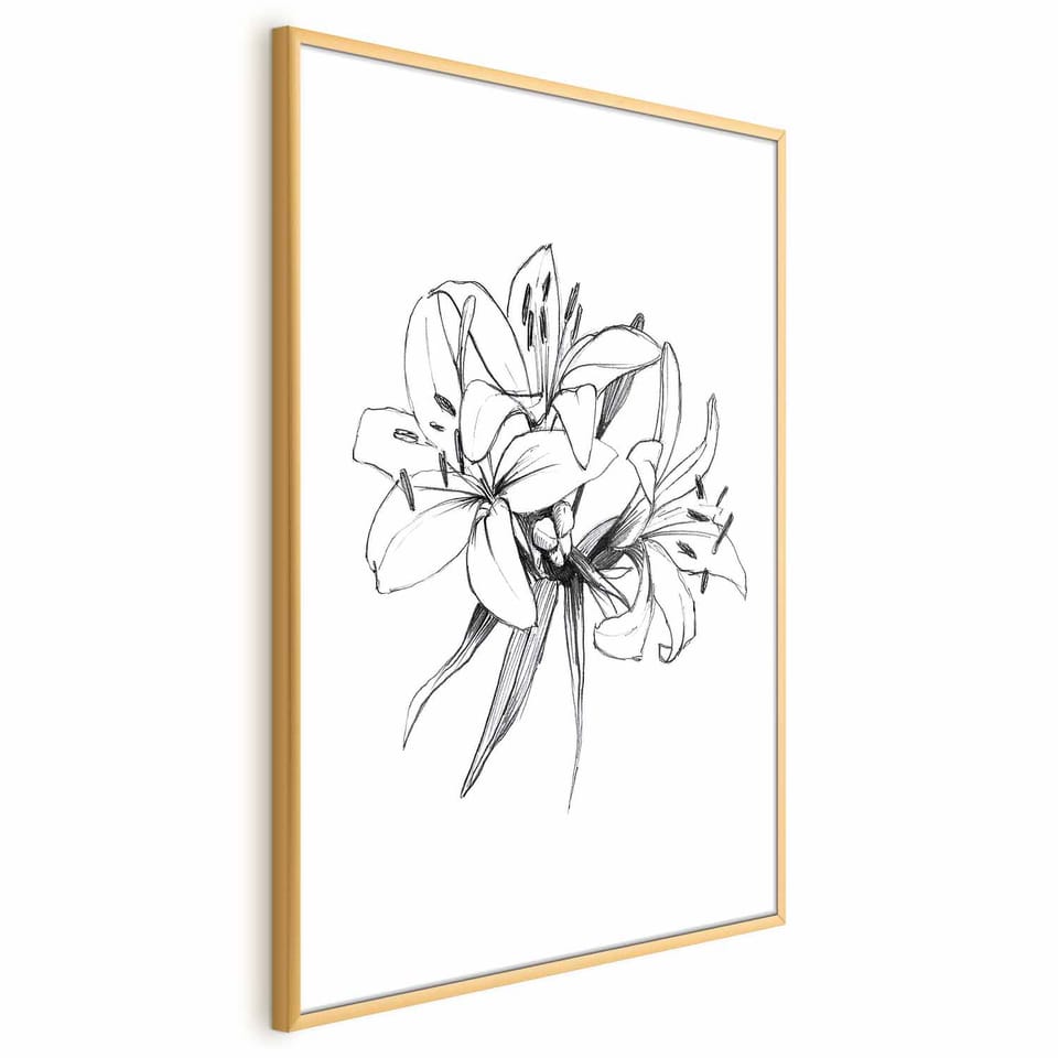 Plakat - Rysowane kwiaty rozmiar 40x60, wykończenie Rama złota
