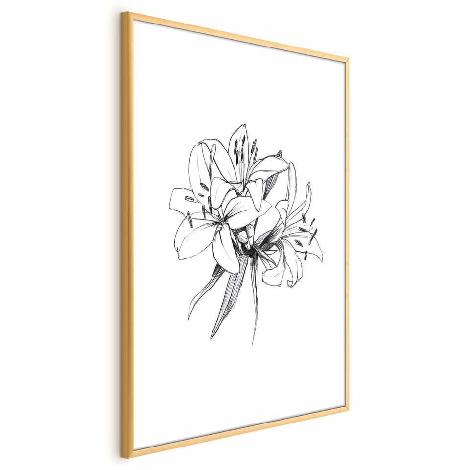 Plakat - Rysowane kwiaty rozmiar 60x90, wykończenie Rama złota z marginesem