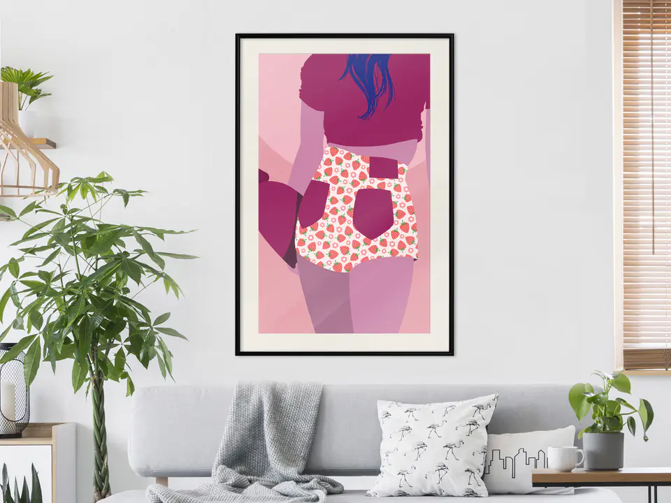 Plakat - Spodenki w truskawki [Poster] rozmiar 40x60, wykończenie Rama czarna z passe-partout