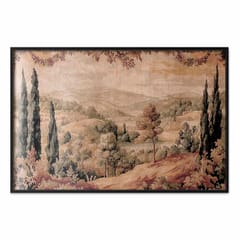 Plakat - Śródziemnomorski krajobraz - stary gobelin ze wzgórzem i jeziorem rozmiar 40x60, wykończenie Rama czarna