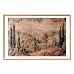 Plakat - Śródziemnomorski krajobraz - stary gobelin ze wzgórzem i jeziorem rozmiar 40x60, wykończenie Rama złota z marginesem