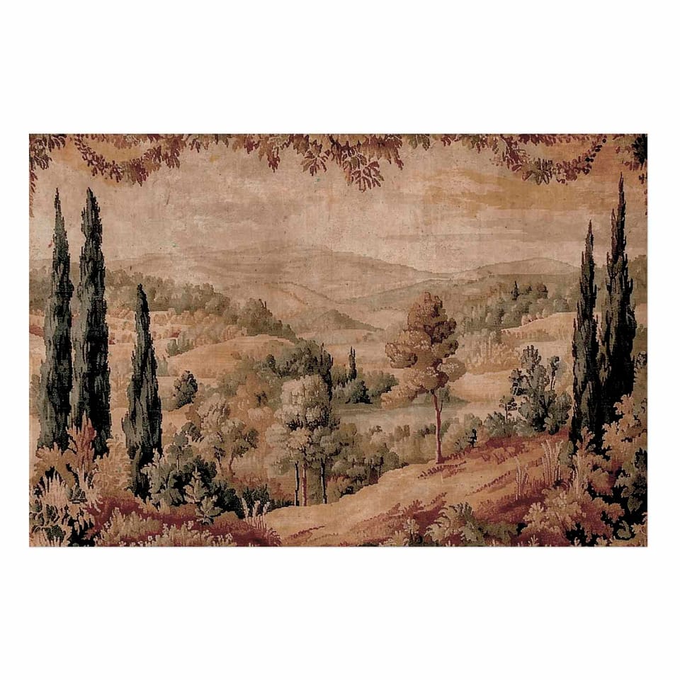 Plakat - Śródziemnomorski krajobraz - stary gobelin ze wzgórzem i jeziorem rozmiar 60x90, wykończenie Bez ramy