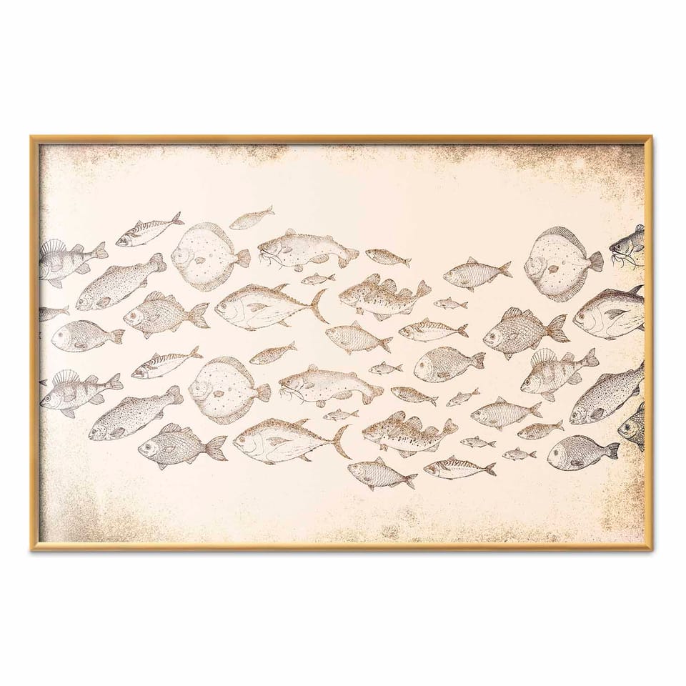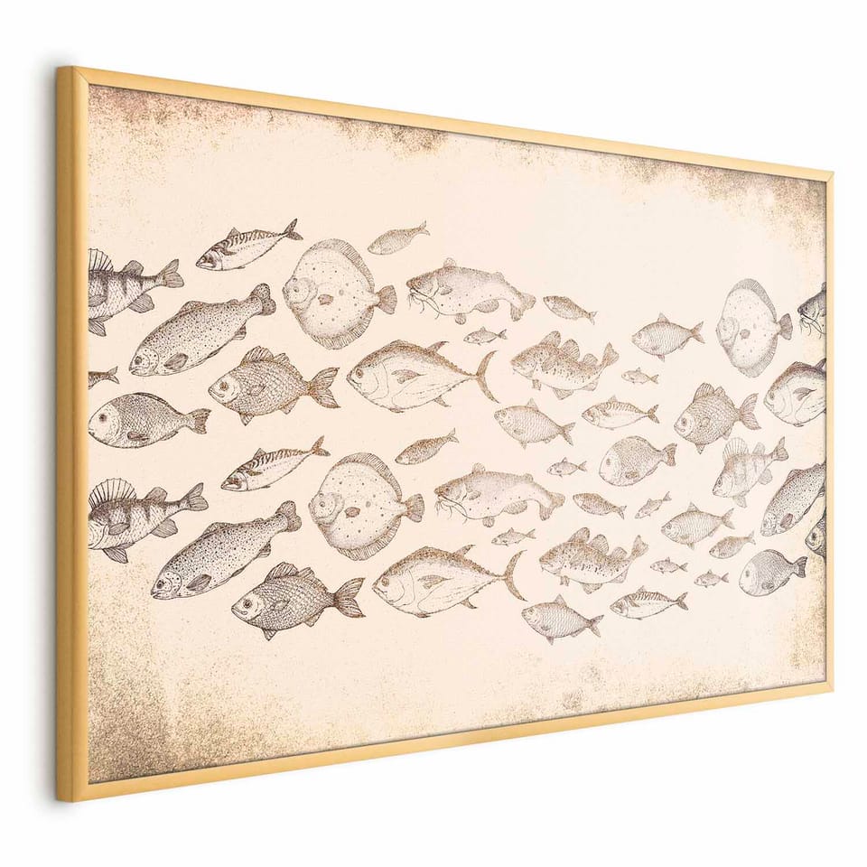 Plakat - Subtelne rybki rozmiar 60x40, wykończenie Rama złota