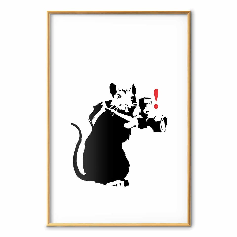 Plakat - Szczur fotograf rozmiar 40x60, wykończenie Rama złota z marginesem