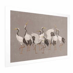 Plakat - Taniec żurawi - jasne sylwetki ptaków na ciepło-szarym tle z fakturą rozmiar 60x40, wykończenie Bez ramy z marginesem