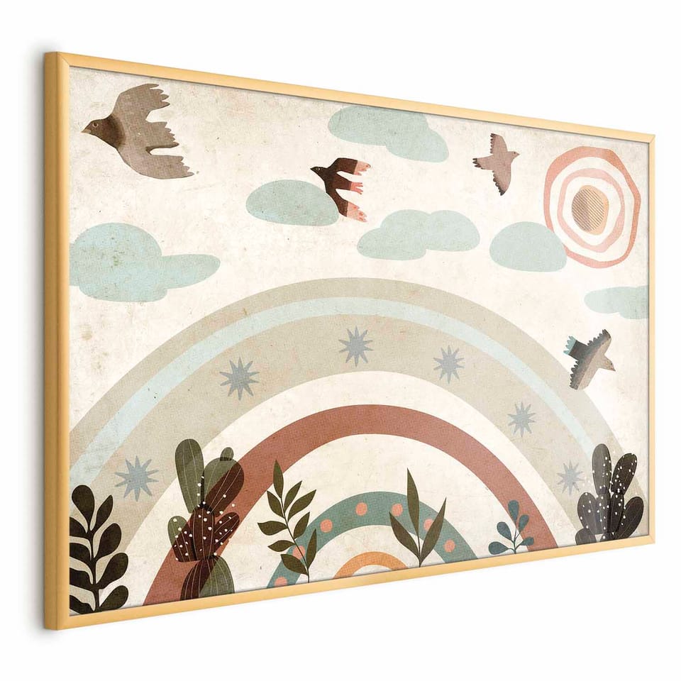 Plakat - Tęcza i ptaki rozmiar 60x40, wykończenie Rama złota