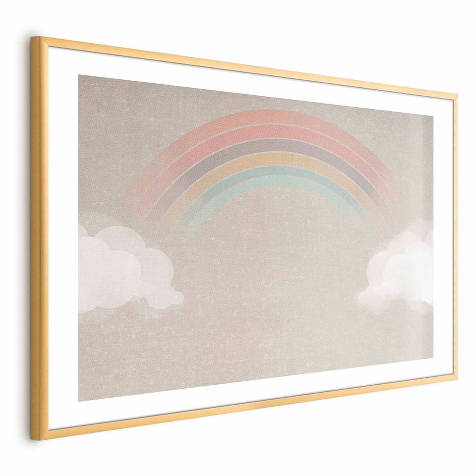 Plakat - Tęcza w deszczu rozmiar 42x29.7, wykończenie Rama złota z marginesem