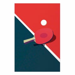Plakat - Tenis stołowy - piłeczka i rakietka na stole rozmiar 60x90, wykończenie Bez ramy