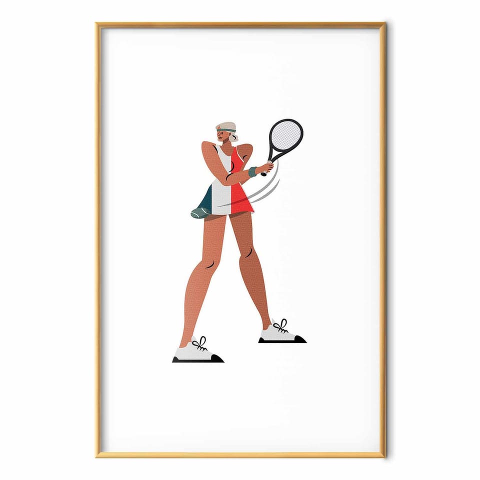 Plakat - Tenisistka z rakietą na białym tle - ilustracja rozmiar 40x60, wykończenie Rama złota z marginesem