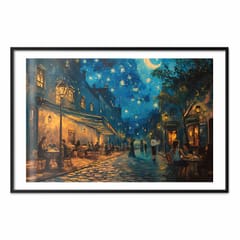 Plakat - Uliczka Paryża - obraz inspirowany stylem Vincenta van Gogha rozmiar 30x21, wykończenie Rama czarna z marginesem