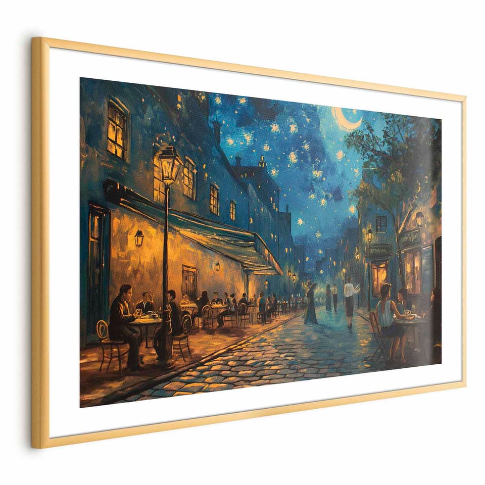 Plakat - Uliczka Paryża - obraz inspirowany stylem Vincenta van Gogha rozmiar 42x29.7, wykończenie Rama złota z marginesem