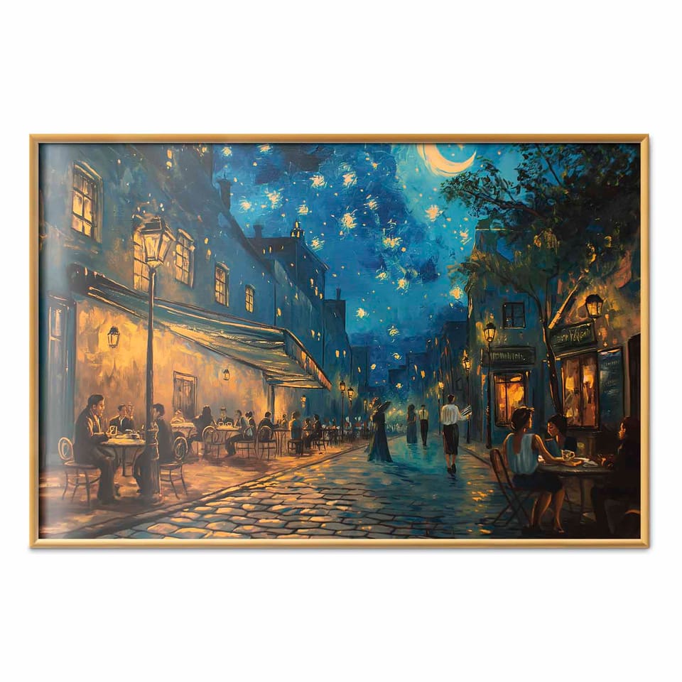 Plakat - Uliczka Paryża - obraz inspirowany stylem Vincenta van Gogha rozmiar 90x60, wykończenie Rama złota
