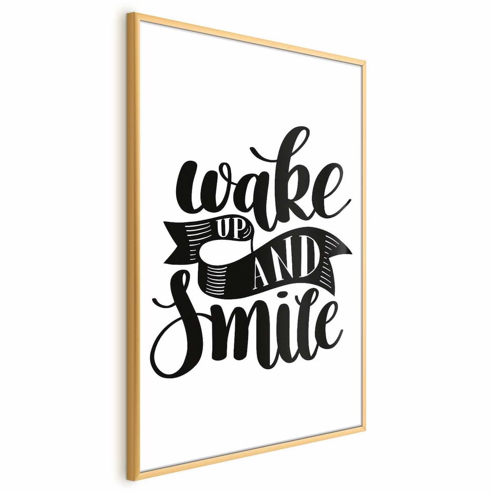 Plakat - Wake up and smile rozmiar 21x30, wykończenie Rama złota