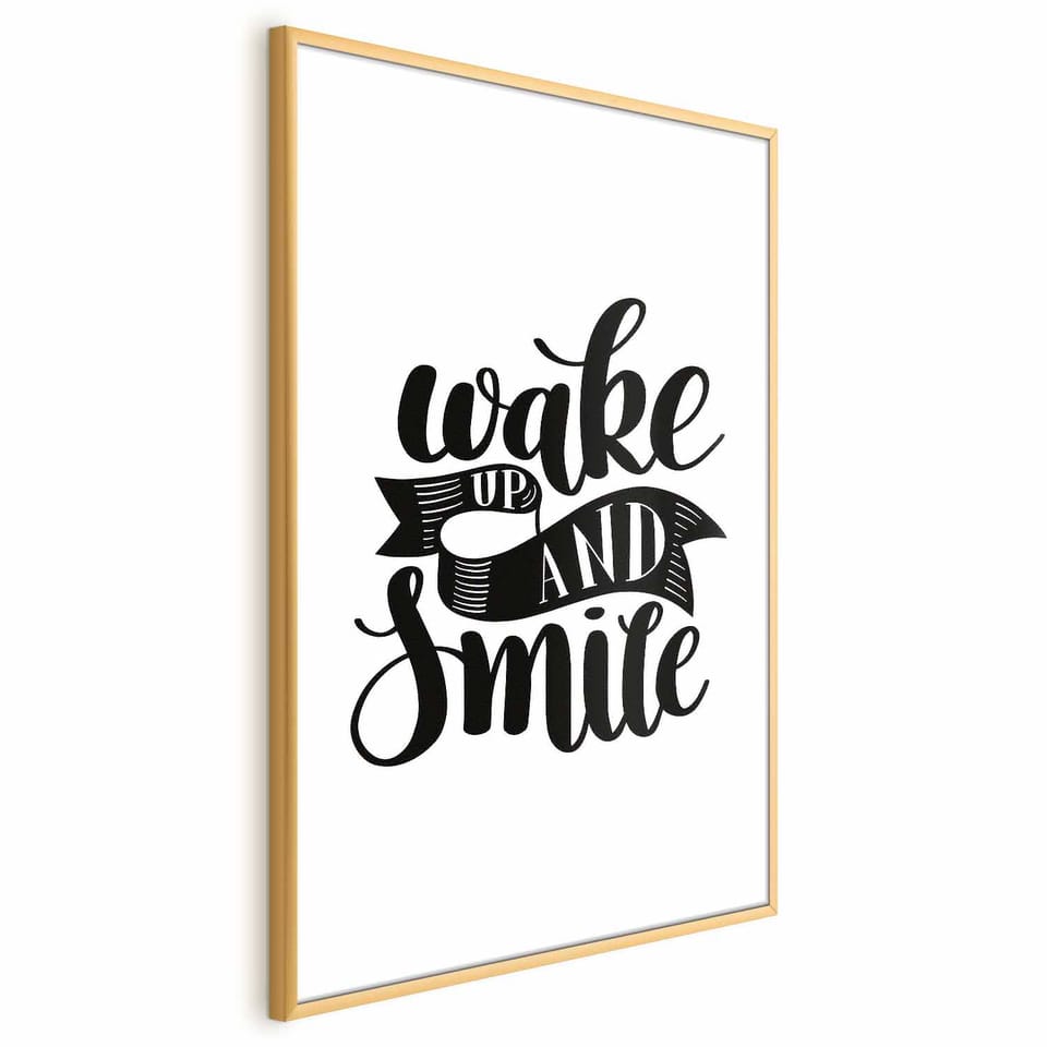 Plakat - Wake up and smile rozmiar 29.7x42, wykończenie Rama złota z marginesem