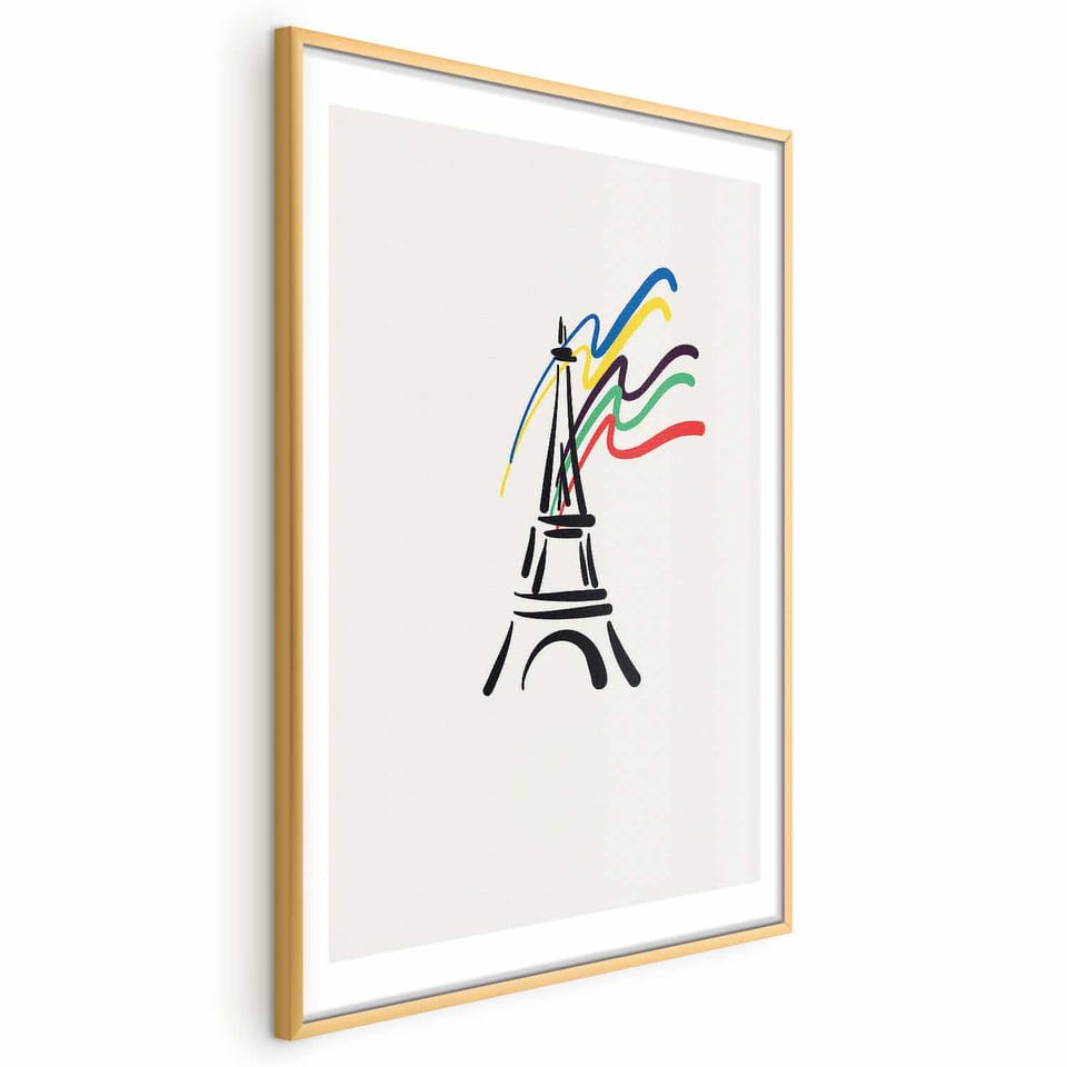 Plakat - Wieża Eiffla i kolory rozmiar 60x90, wykończenie Rama złota z marginesem