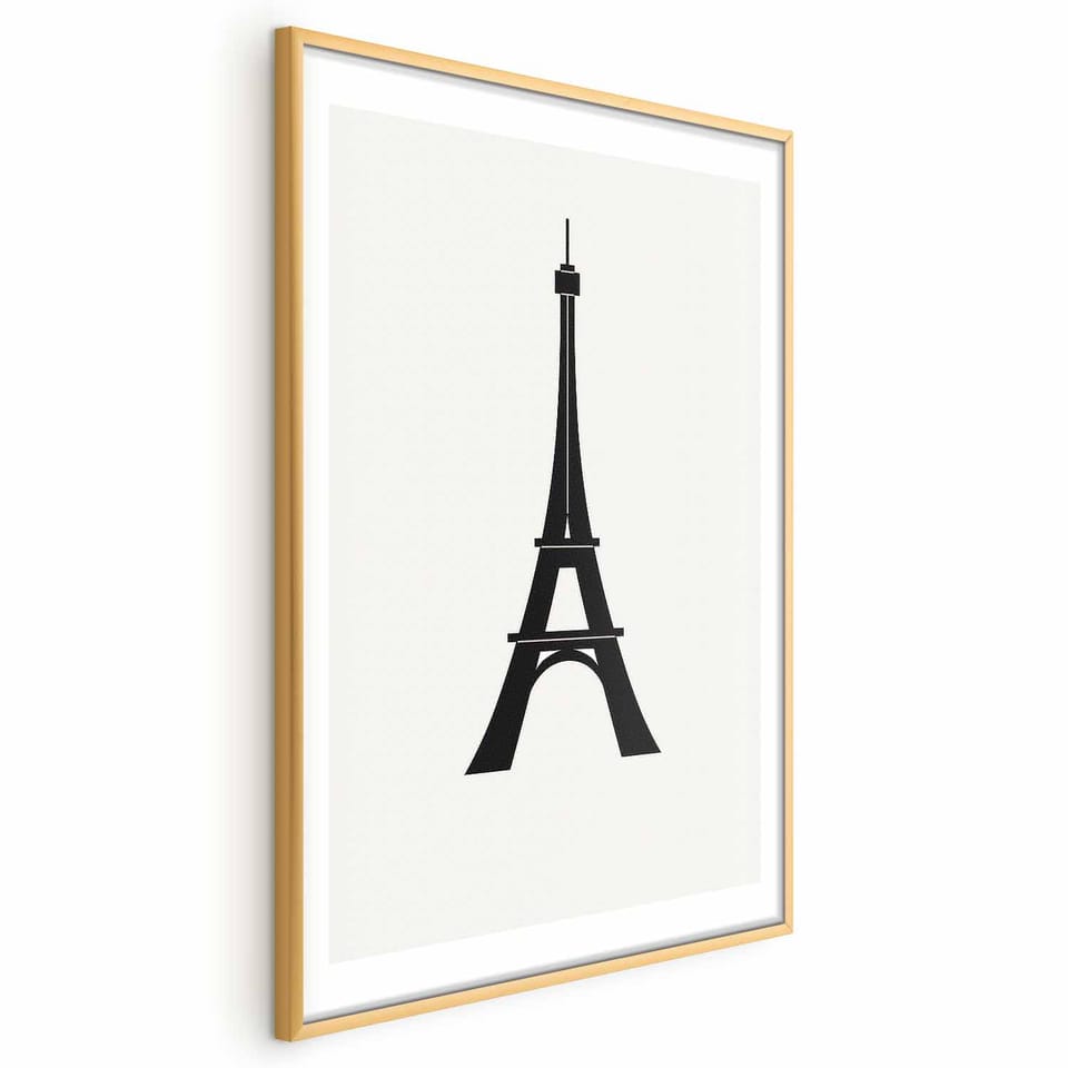 Plakat - Wieża Eiffla prosta grafika w czerni i bieli rozmiar 21x30, wykończenie Rama złota z marginesem