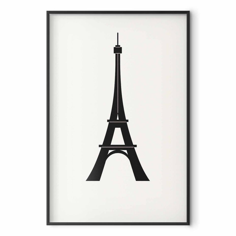 Plakat - Wieża Eiffla prosta grafika w czerni i bieli rozmiar 60x90, wykończenie Rama czarna