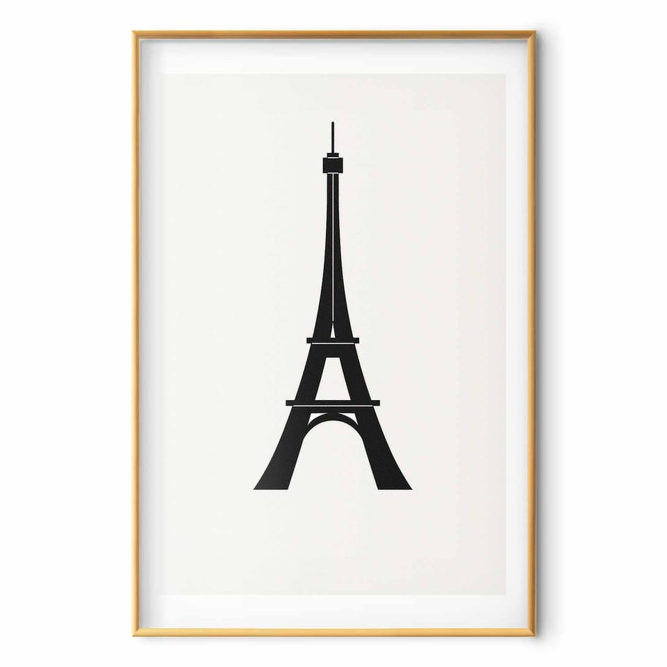 Plakat - Wieża Eiffla prosta grafika w czerni i bieli rozmiar 60x90, wykończenie Rama złota z marginesem