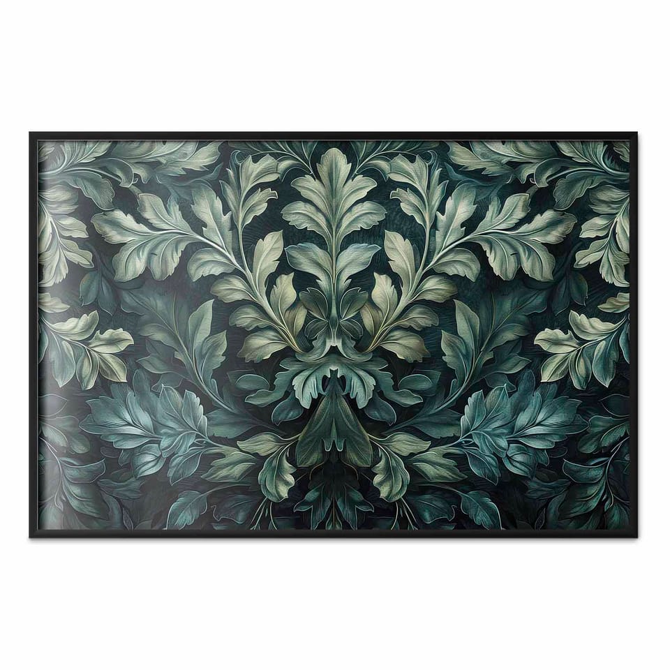 Plakat - Wiktoriańskie liście w ciemnych zieleniach rozmiar 60x40, wykończenie Rama czarna