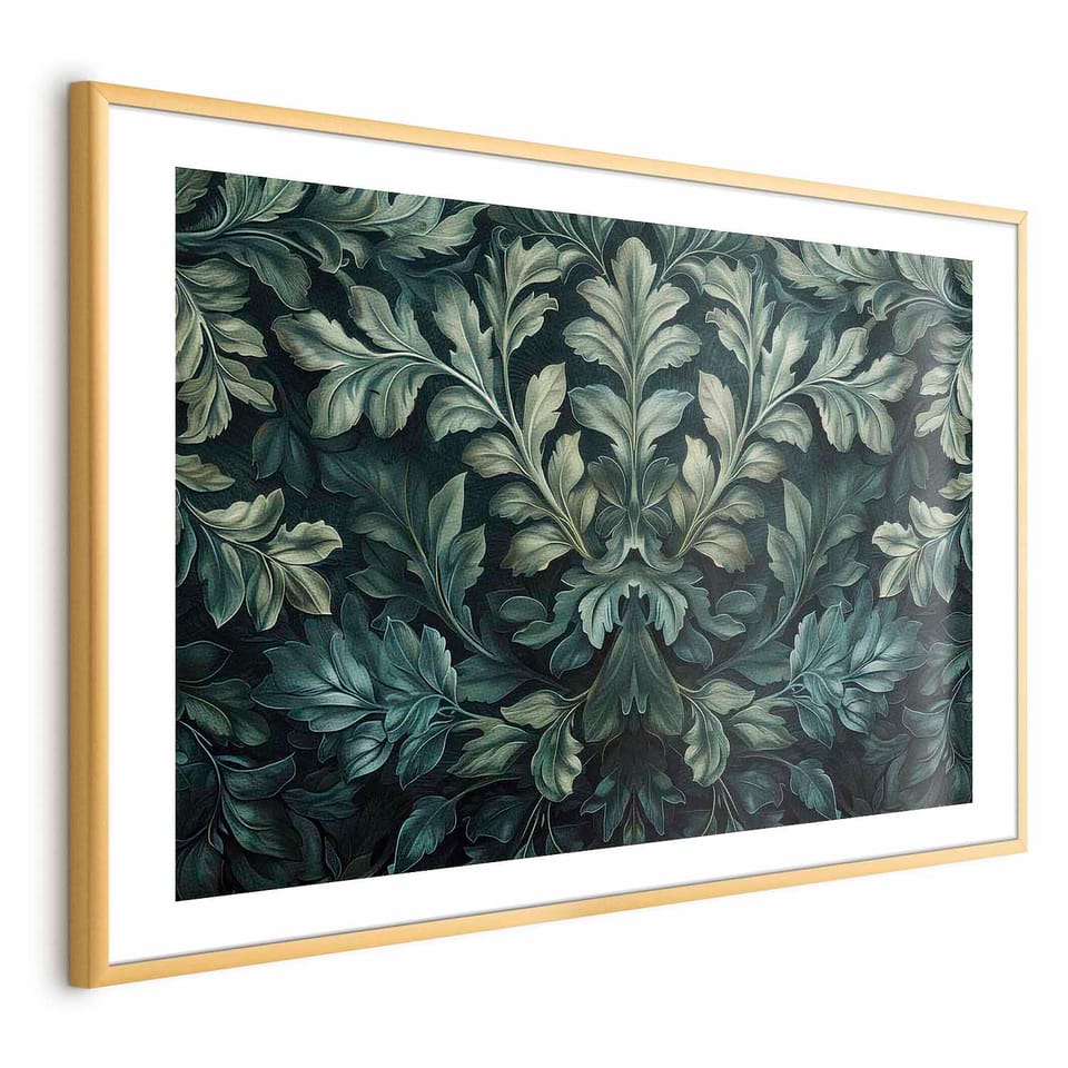 Plakat - Wiktoriańskie liście w ciemnych zieleniach rozmiar 60x40, wykończenie Rama złota z marginesem