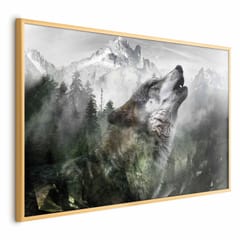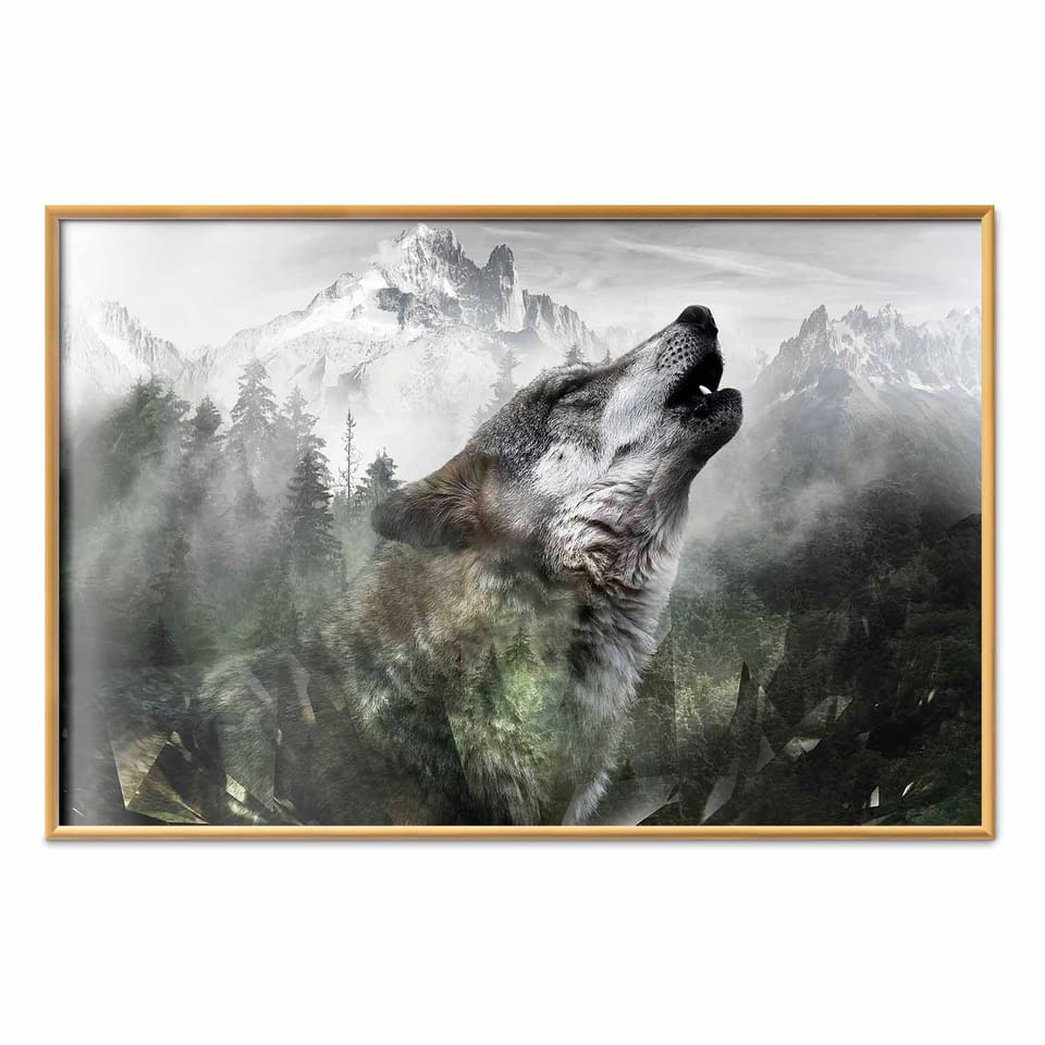 Plakat - Wyjący wilk rozmiar 60x40, wykończenie Rama złota