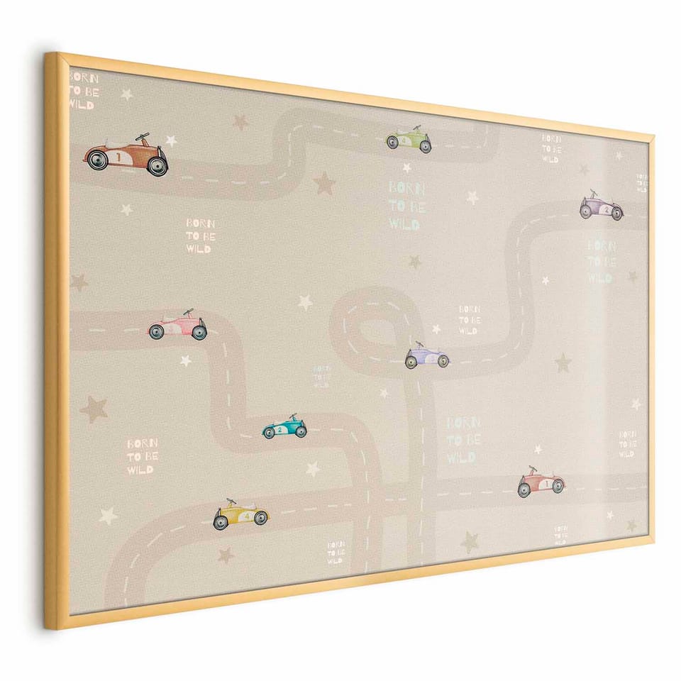 Plakat - Wyścigowe autka rozmiar 42x29.7, wykończenie Rama złota