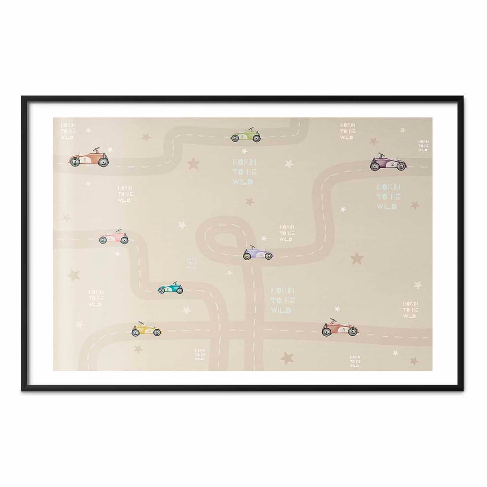 Plakat - Wyścigowe autka rozmiar 60x40, wykończenie Rama czarna z marginesem