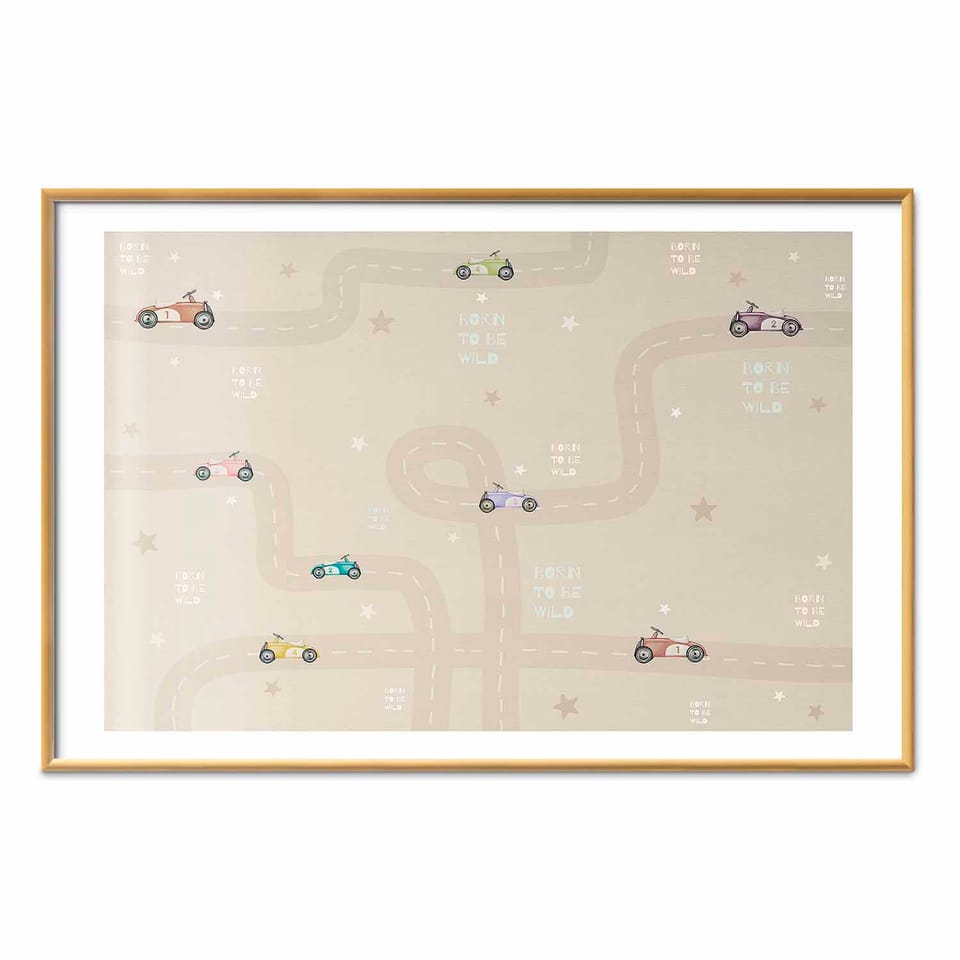 Plakat - Wyścigowe autka rozmiar 90x60, wykończenie Rama złota z marginesem