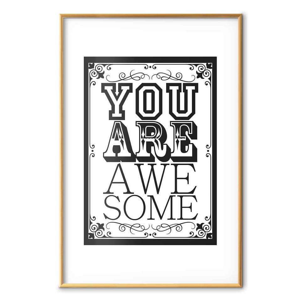 Plakat - You are awesome rozmiar 40x60, wykończenie Rama złota z marginesem