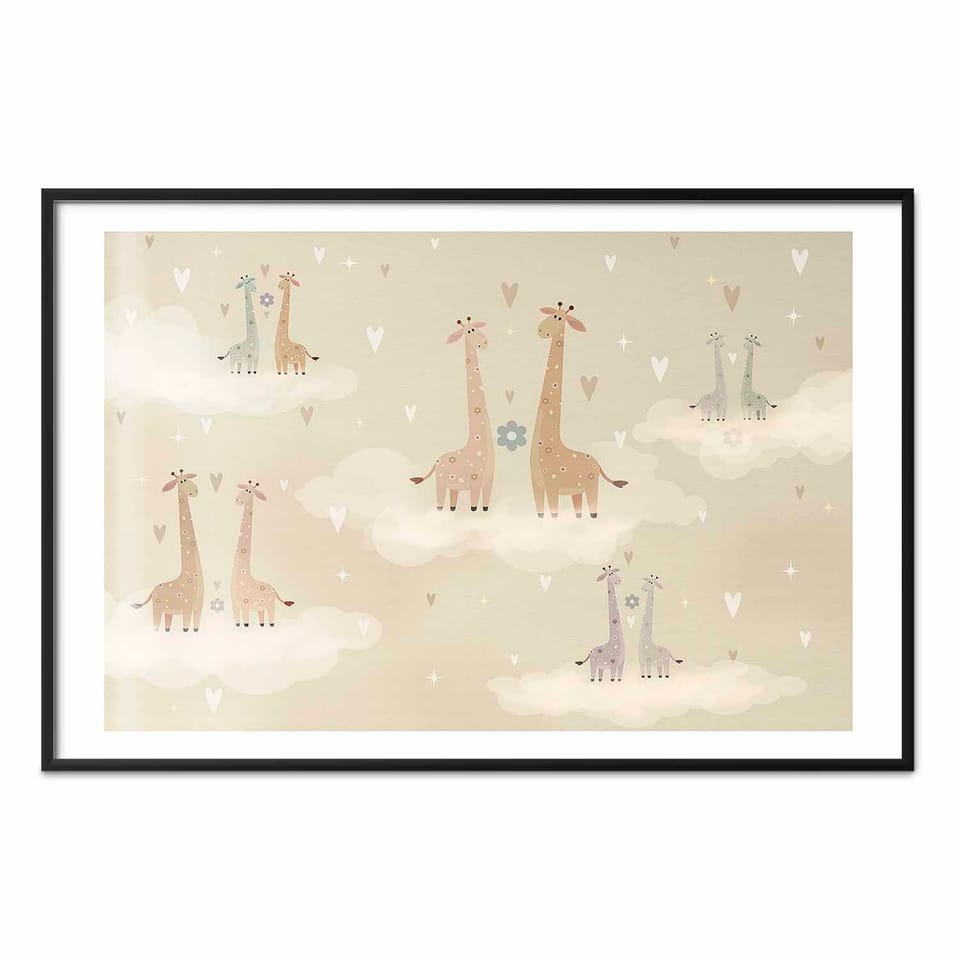Plakat - Zakochane żyrafy rozmiar 60x40, wykończenie Rama czarna z marginesem