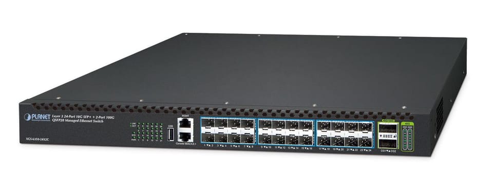 Planet Layer 3 24-Port 10G SFP+ + 2-Port 40G/100G QSFP28 Managed Switch with optional Redundant Power,(Hardware stacking up to 10 units,