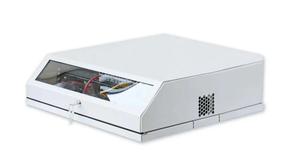 Płaska szafka wisząca 19 cali 6 U +3U ze szklanym okienkiem szara