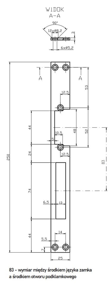 - Wymiary: 250 x 25 x 3 mm